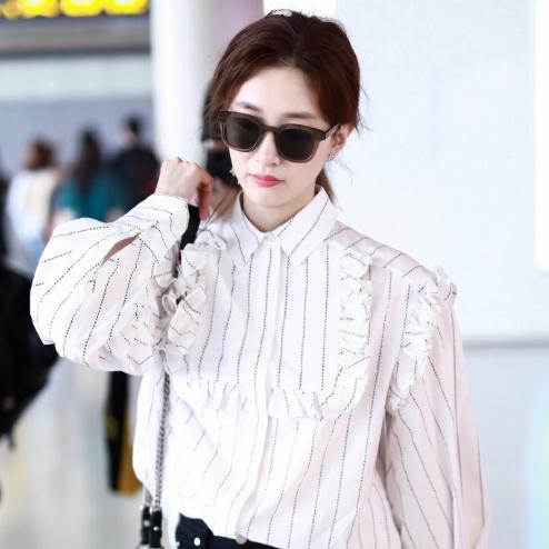 江疏影同款 MSGM 荷叶边条纹衬衫