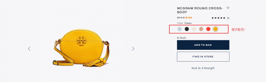 夏天就是小包包的天下,如果你还缺一只,5姐诚意*这款 Tory Burch 汤丽柏琦 MCGRAW 圆形小挎包哦~此款采用柔软*材质,触感细腻,圆滚滚的外形非常讨喜,包面带有 TB 双T logo 标志,侧边带有飘逸流苏,优雅精致。包包虽然是迷你尺寸,能装的下 iPhone PLUS,口红和一些零钱。现在官网有超多配色,妹子们可以好好选选~
