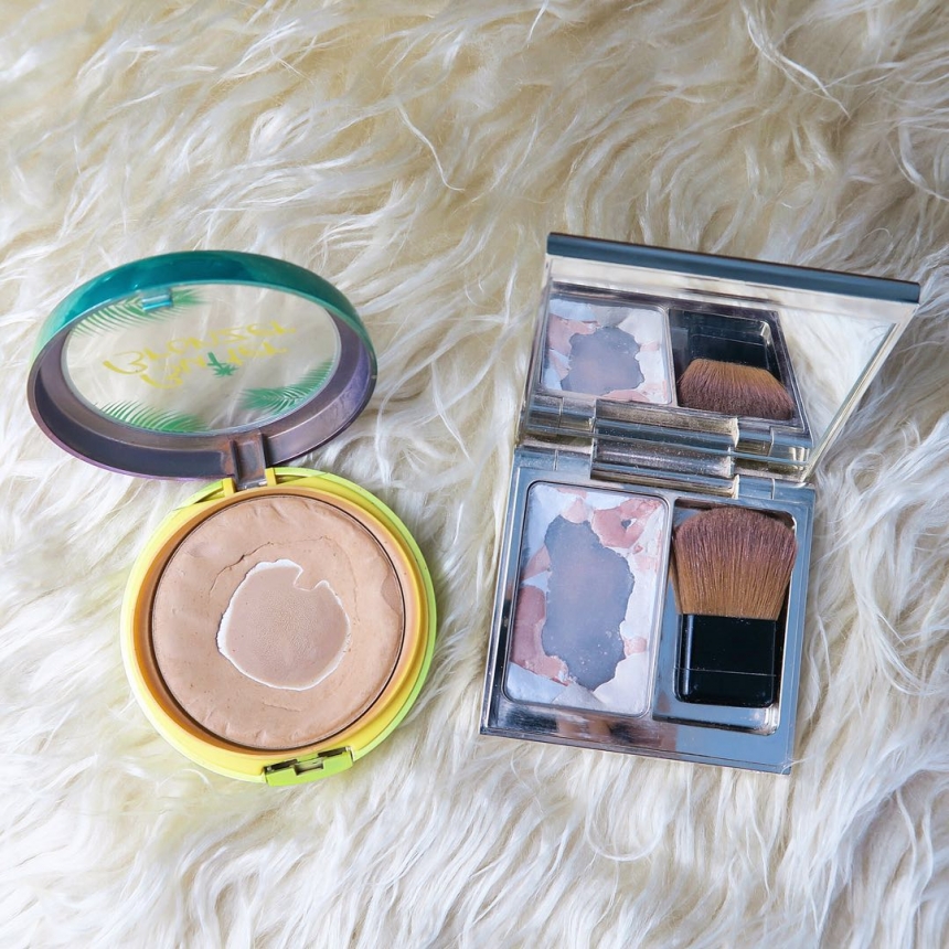 Physicians Formula Butter Bronzer 黄油古铜粉:被k妹*火起来的黄油修容,其实原本的用途是用来模仿日晒效果的古铜粉。5姐这块是 light 浅色号,因为不像一般的古铜粉那么偏红,也可以用于修容。5姐每天的用法就是用修容刷蘸取在下颌、侧脸处疯狂打圈企图营造小脸效果,同时还能过渡脸和脖子的色差。因为是浅色所以日常使用非常自然,如果要上镜的话5姐还是会选择KA修容,效果更明显。粉质软糯,确实有点黄油的感觉。这盘5姐使用下来感觉非常好,应该还会在买第二盘,这盘是亚马逊海外购入手,价格比较可爱,而且浅色会比较便宜哦~这盘的缺点或者优点就是有非常非常浓郁的椰子香气,5姐把这盘和其他彩妆收纳在一个小抽屉里,其他彩妆都染上了香味。对于不喜欢椰子气味的人来说可能会有点在意。