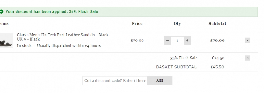 Allsole 现有 CLARKS 男士 Un Trek Part Leather Sandals 沙滩鞋 热卖,原价£70,现特价£45.5(约388元),需要使用优惠码:SALE35 ,有效期至2018年6月5日7点,满£50可以直邮中国。立即购买>>