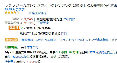 Amazon.co.jp 现有 RAFRA 香橙温感卸妆膏 100g,原价3240日元,现特价2268日元(约134元),需要使用额外8折优惠码:AGMAY20,还有10%的优惠券,有效期至北京时间 2018年06月10日22点59分,目前部分商品还不支持直邮中国,可使用转运公司转运带回。立即购买>>