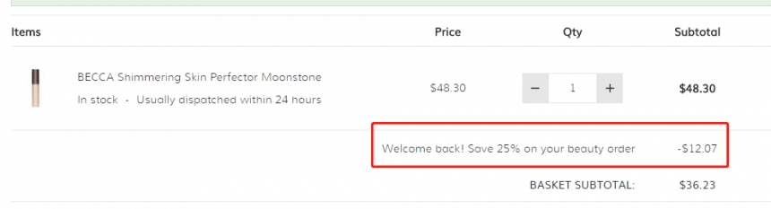 SkinCareRx 现有 becca 经典液体高光 色号 *stone,原价$48.3,现特价$36.23(约232元),需要使用优惠码:IMBACK ,优惠随时可能失效,满$49免美国境内运费。立即购买>>