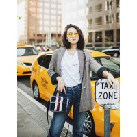 [时尚博主晚晚学姐,秀智,沈小英明星原款]系扣*格纹翻领双排扣休闲西服_米黄色