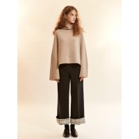 宽松高领侧开叉前短后长女士插肩袖针织衫_浅棕色