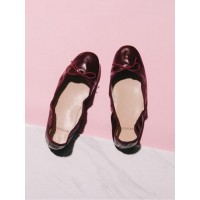 E.Ballerina圆头浅口绑带装饰女士低跟单鞋_酒红色