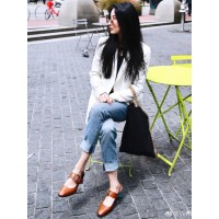 [时尚博主Veronica小鲸*,MissAnti原款]时尚尖头金属扣方形粗高跟穆勒鞋_驼色