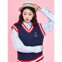 logo条纹拼带男女同款休闲草帽_粉色/藏青色