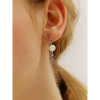 轻奢珍珠金属链结女士耳环_银色