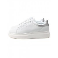 圆头系带字母男女同款厚底休闲鞋_白色+银色