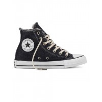 复古拼色系带高帮男女同款帆布鞋_黑色