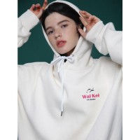 宽松落肩字母刺绣加绒男女同款连帽卫衣_乳白色