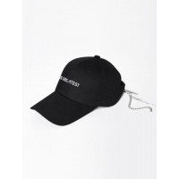 字母刺绣钥匙扣链条吊坠男女同款休闲棒球帽_黑色
