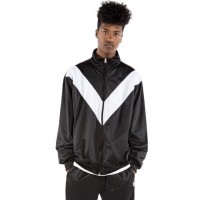 宽松落肩V字拼色拉链男女同款高领夹克_黑色