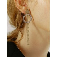 [韩流明星同款]镶钻圆环金属链吊坠耳环_金色
