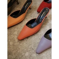 SJ尖头双搭扣露跟牛皮高跟鞋_银色