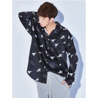 MRJ X MAIN BOOTH联名款个性印花宽松衬衫(黑色)