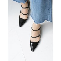 [知名博主gogoboi*,李圣经明星原款]SJ尖头双搭扣露跟牛皮高跟鞋_黑色