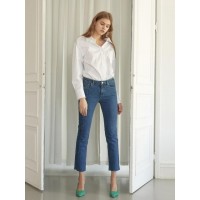 时尚*不对称拼接女士小脚牛仔裤_蓝色