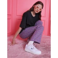 [SEVENTEEN权顺荣明星原款]宽松直筒刺绣点缀男女同款休闲长裤_格纹