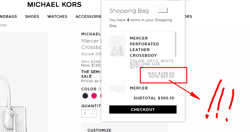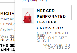 Michael Kors Mercer 今年*被杨幂给背火了,她背了各种 size 各种颜色的这款包,这个系列的包包实用性非常强,容量很大很能装,难怪大幂幂在机场特别喜欢背这款包包。Mercer 的面料是*大的亮点,为了保证包袋外部柔和而挺阔,极简主义,超级好看!!!这款现在有bug.. 计入购物车后结账变成$93!!而且黑色款也可以折扣~~加入购物车后显示bug价!!!