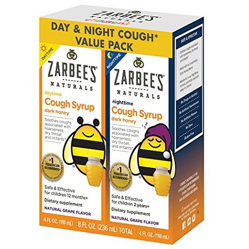 【美亚直邮】Zarbee's 婴儿日间*糖浆 118ml + 夜间*糖浆 118ml 天然葡萄口味