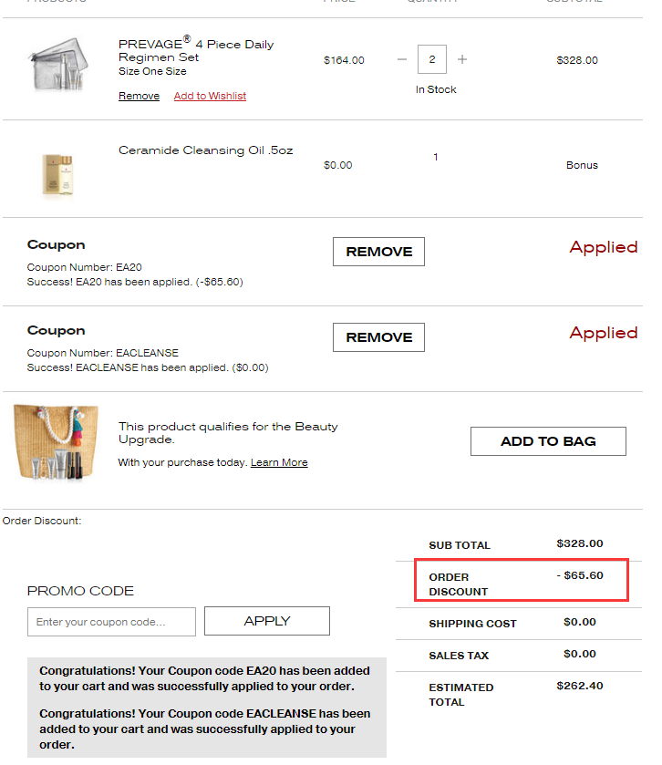 Elizabeth Arden 现有 经典高端护肤品牌 满$75享9折,满$100享8.5折,满$125享8折,需要使用优惠码:EA20 ,折后满$150送洁肤油15ml, 需要使用优惠码:EACLEANSE ,优惠随时可能失效,美国境内免邮。立即购买>>