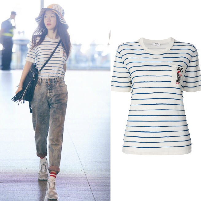 霍思燕*近街拍同款 SONIA RYKIEL 条纹T恤衫