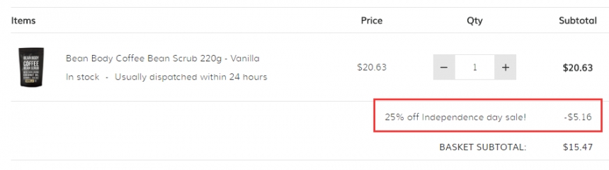 SkinCareRx 现有 BEAN BODY 咖啡豆身体磨砂 香草味 220g,原价$20.63,现特价$15.47(约102元),需要使用优惠码:JULY4 ,优惠随时可能失效,满$49免美国境内运。立即购买>>