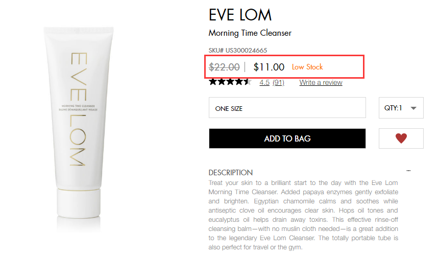 Space NK US 现有 EVE LOM 温和晨间洁面,原价$22,现特价$11(约73元),优惠随时可能失效,满$50免美国境内运费。立即购买>>