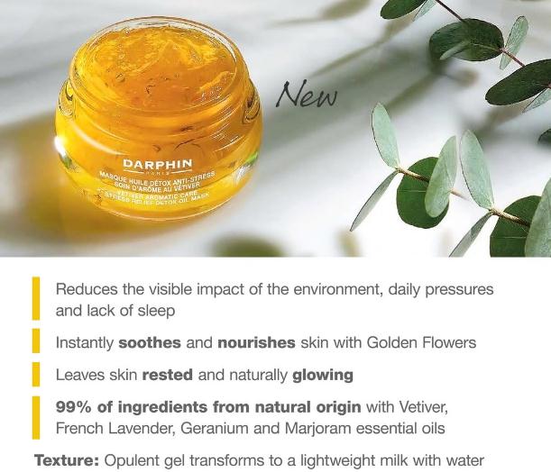 DARPHIN 迪梵是一个有着悠久历史的法国奢华*妆护肤品牌,以植物芳香精油为基准,运用植物生物学、芳香*法及植物*法等,它家的护肤品也是很多贵妇的心头爱哦,这款香根草舒压排*面膜是迪梵新推出的一款新品,香根草具有*、舒压、*、*粉刺、收缩毛孔的功效,因为它的精油很难与水分离,所以这种植物的精油产量很少,是一种很珍贵的材料。这款面膜质地看着很像果冻,涂到脸上成膜,可以感受到油润的感觉,味道具有浓郁的柠檬味又带有独特的辛香,洁面后涂在干爽的皮肤上,10-15分钟后洗净,一周使用2-3次,皮肤会明显变得光滑细腻,毛孔缩小,而且不那么容易干燥。