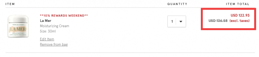需要免费注册 Harrods Reward 会员才能看到折扣价格,价格显示在购物车内。