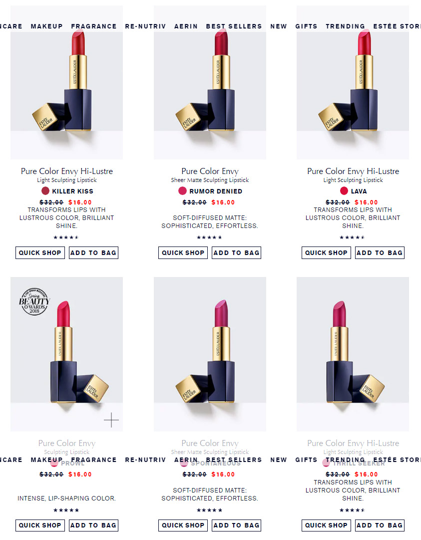 Estee Lauder 雅诗兰黛 美国官网 现有 精选倾慕唇膏部分色号 限时5折,线上直减无需折扣码,每满$25多送一件自选小样,*多满$150送6件,赠品需要在结账时手动选择添加,有效期至北京时间 2018年08月05日12点,任意订单美国境内免邮。立即购买>>