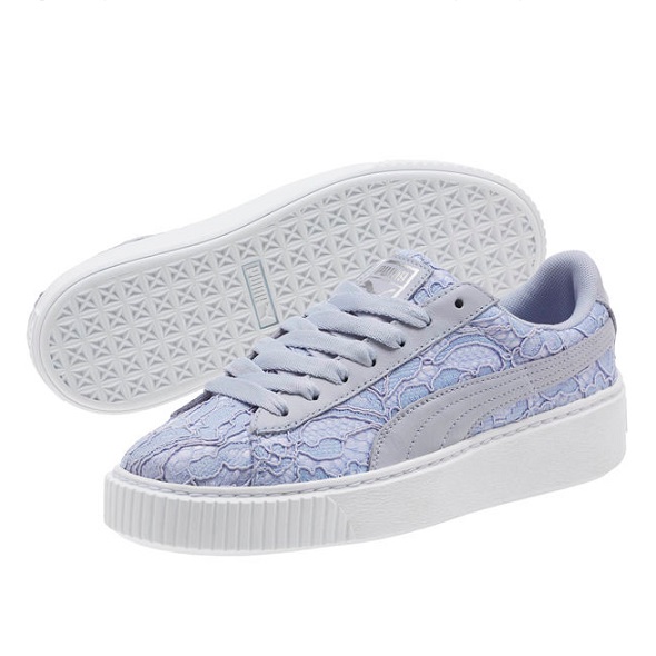 Puma 彪马家经典的 Platform 厚底鞋型加上蕾丝纹路的鞋面设计,紫蓝色的蕾丝配上灰色的皮边,简直少女心十足呢!这个配色真的超级梦幻,裸腿穿好看的不要不要的,搭配裙子牛仔裤都很美貌,裸腿搭森系或复古长裙或是冬天搭配大衣也都很OK呀!码数不全,喜欢的赶紧下手咯!