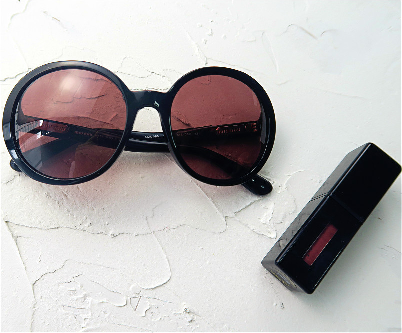 这款也是 MIUMIU 家的,但是*眼看到这个风格是不是绝对不是很像呢,5姐14年刚去美国那会入得,也算是具有年代感的了,但是圆形设计的墨镜有一点好处不挑脸型,谁都能Hold住~