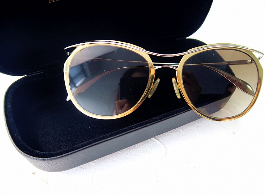 这是5姐去夏天入的,也是以 FLATBA 为设计原型,所以和Peter 有几分相似的,只是多了一个金属横杠装饰,有点类似飞行员墨镜的设计。黄色算是比较浮夸的配色了,所以5姐一般都是凹造型街拍旅行的时候才拿出来使用,但是夏天佩戴真的非常好看。