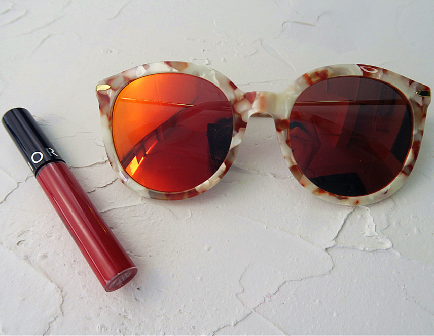 这款墨镜5姐觉得设计形有点像KW,是不是,橘色的镜片的还真不多见,同色玳瑁镜架,人群中一眼就能看见你~