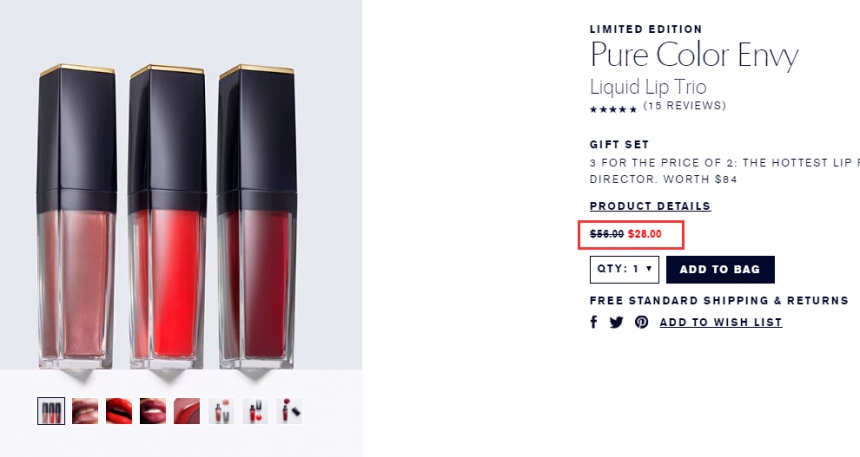 Estee Lauder 现有 半价!Estee Lauder 雅诗兰黛 倾慕液体唇膏3件套装,原价$56,现特价$28(约187元),线上直减无需CODE,每满$25多送一件自选小样,*多满$150送6件,赠品需要在结账时手动选择添加,有效期至北京时间 2018年08月05日12点,美国境内免邮。立即购买>>