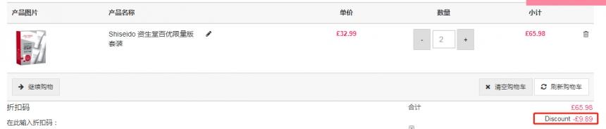 Unineed Limited CN 现有 Shiseido 资生堂百优限量版套装,原价£39,现特价£28.04(约247元),一件享额外9折,两件享额外8.5折。优惠随时可能失效,满£50即可免费直邮中国。立即购买>>