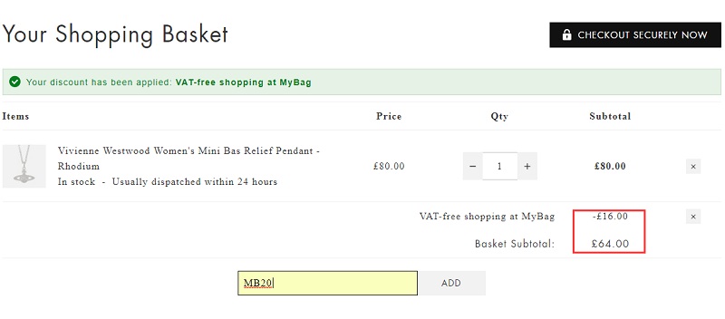 Mybag官网 现有 精选 Vivienne Westwood 包包配饰 直接8折 优惠活动,需要使用优惠码:MB20 ,有效期至北京时间 2018年07月24日07点,满£40可以直邮中国。立即购买>>