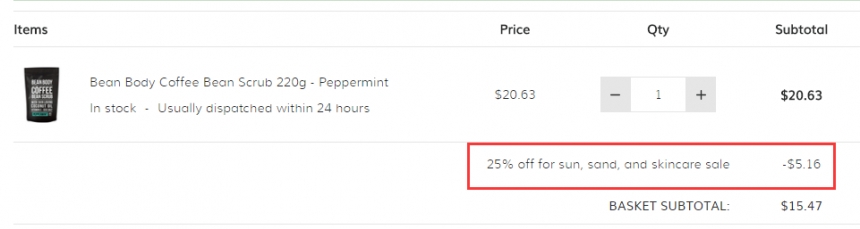 SkinCareRx 现有 范冰冰*!BEAN BODY 咖啡豆身体磨砂膏 薄荷味,原价$20.63,现特价$15.47(约105元),需要使用优惠码:SUN ,优惠随时可能失效,满$49免美国境内运费。立即购买>>