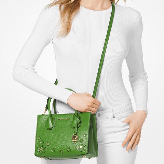超级美腻!Michael Kors 花卉装饰绿色女士肩包