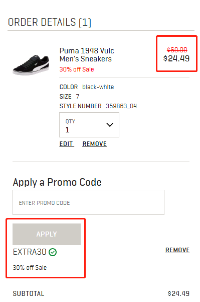 Puma US 现有 Puma 彪马 1948 Vulc 经典款男士板鞋 热卖,原价$60,现特价$24.49(约167元),需要使用优惠码:EXTRA30 ,有效期至北京时间 2018年07月24日15点,订单满$75可享美国境内免邮。立即购买>>
