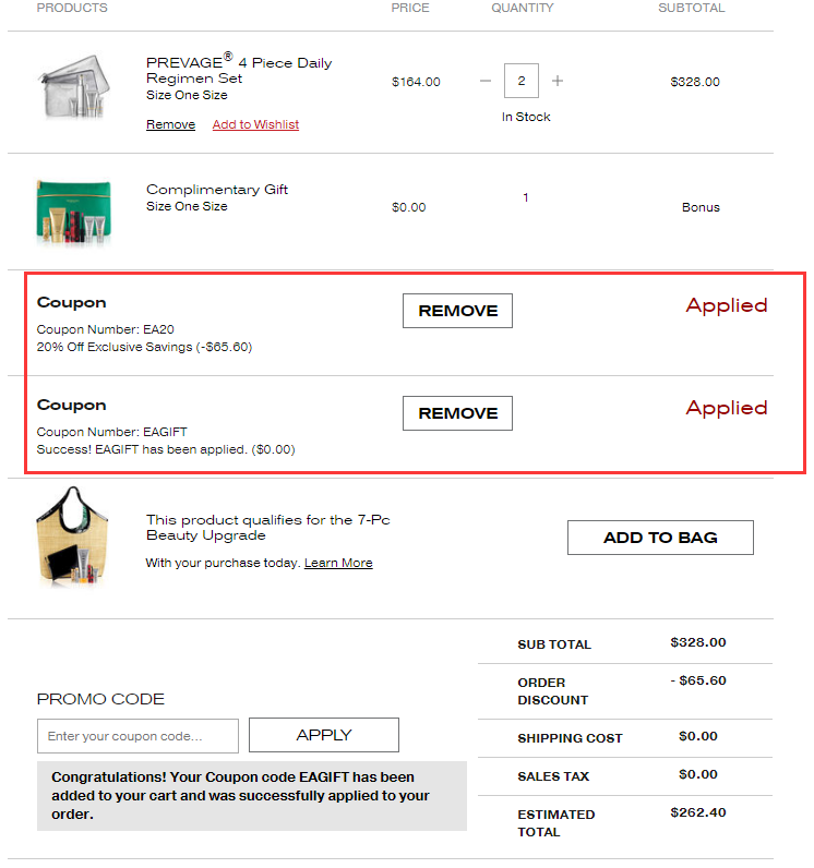 Elizabeth Arden 现有 经典高端护肤品牌 满$125享8折,需要使用优惠码:EA20 ,满$175送7件护肤礼包,需要使用优惠码:EAGIFT ,优惠随时可能失效,美国境内免邮。立即购买>>