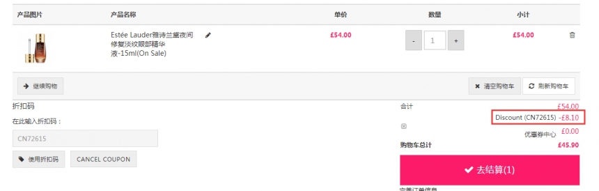 Unineed Limited CN 现有 Estée Lauder 雅诗兰黛夜间修复淡纹眼部精华液 15ml,原价£54,现特价£45.9(约409元),需要使用优惠码:CN72615 ,优惠随时可能失效,满£50即可免费直邮中国。立即购买>>