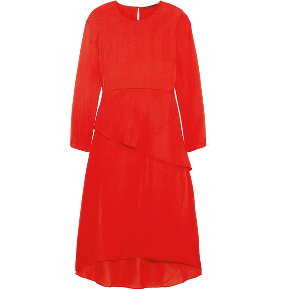 Maje Remania 褶饰缎面绉纱红色连衣裙