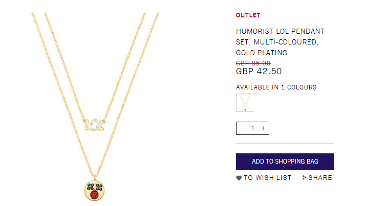 Swarovski UK 现有 Swarovski HUMORIST LOL 链坠套装 热卖,原价£85,现特价£42.5(约379元),优惠随时可能失效,美国境内免运费。立即购买>>