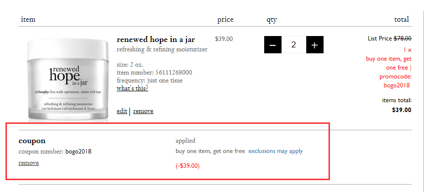 Philosophy 现有 Philosophy 滋润保湿希望面霜 50ml,现特价$39(约266元),买1送1!需要使用优惠码:bogo2018 ,优惠随时可能失效,满$50免美国境内运费。立即购买>>