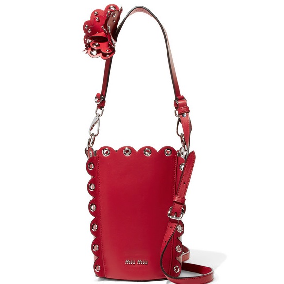 【出街利器】MIU MIU 带缀饰红色皮革水桶包