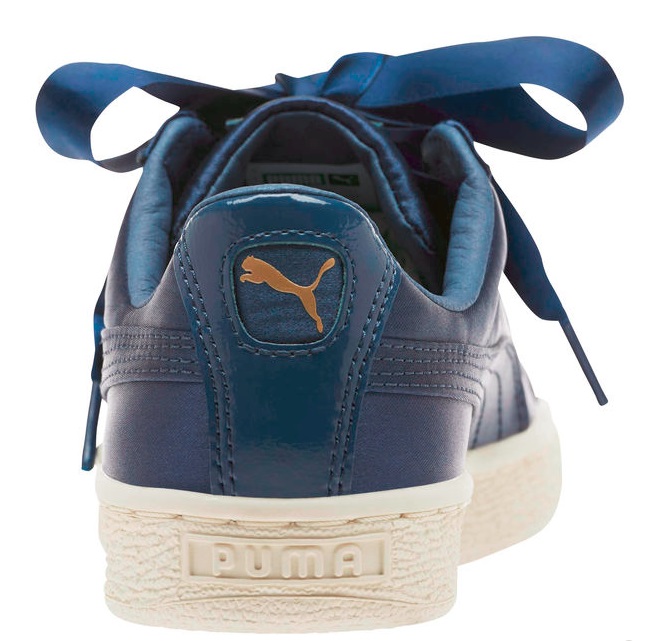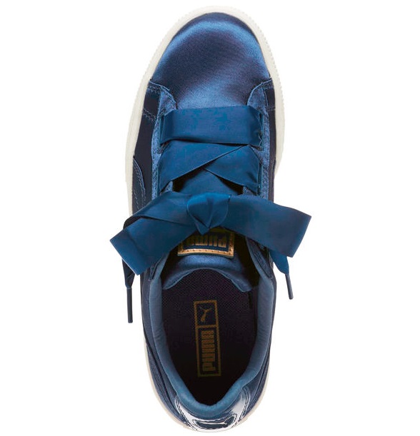 Puma 彪马的蝴蝶结板鞋近两年可以说是非常火爆了,这双 Basket Heart Lunalux 沿袭了经典的 Suede 板鞋设计,鞋面采用深蓝色缎面,超显白显气质!同时又加入甜美的宽版携带元素,有趣又抢眼,优雅又甜美!大童款性价比超高,现女生黄金码基本码全哦!