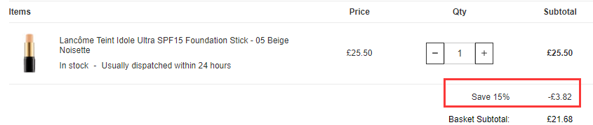 Lookfantastic 现有 Lancome 兰蔻 持妆粉底棒,原价£25.5,现特价£21.68(约192元),需要使用优惠码:COS15 ,优惠随时可能失效,品牌限制,暂不支持直邮,需要转运。立即购买>>